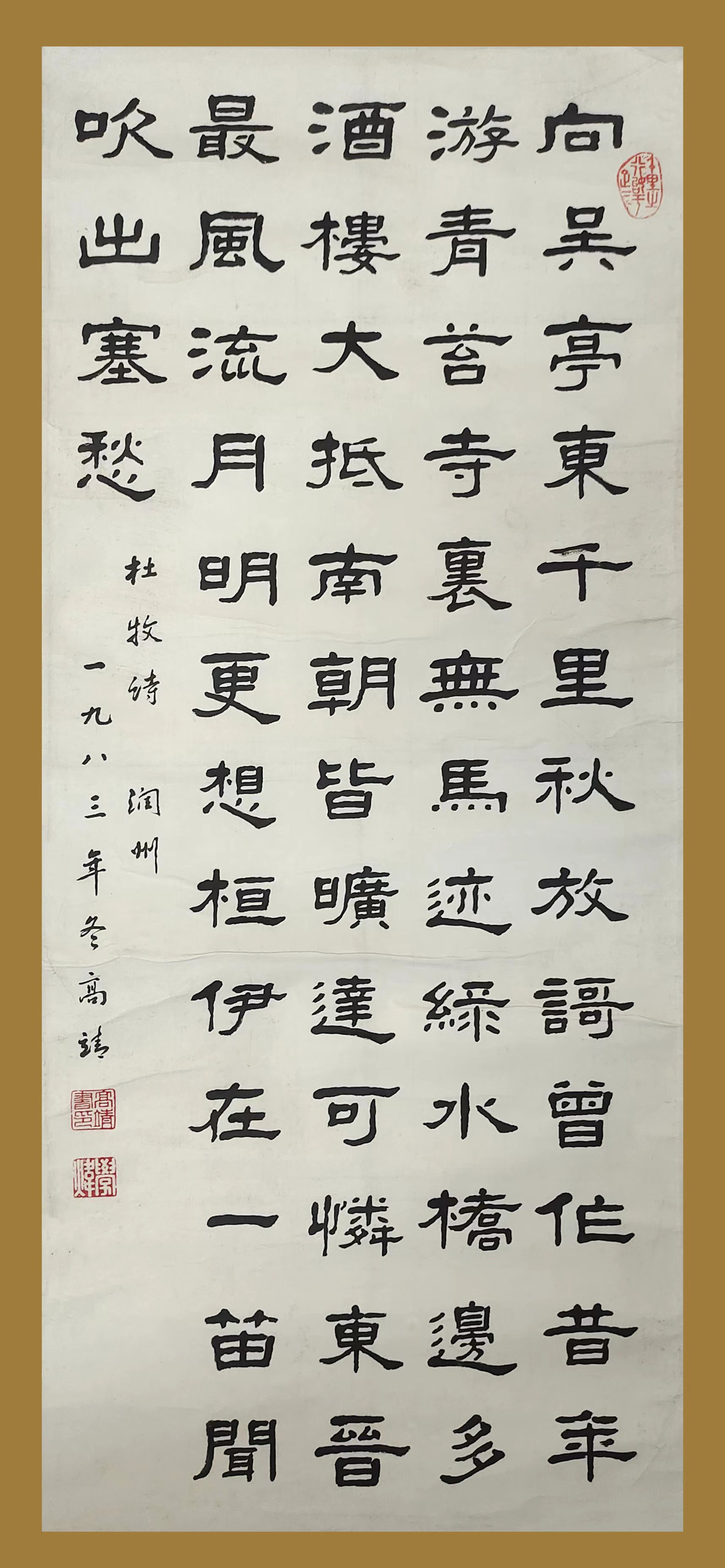 高 靖(1913—2004),女书法家,潍县西关人,共产党员,毕业于华东师范大学,半生从事语文教育,1960年任潍坊三中副校长,1976年离休。 先生系中国书法家协会会员、潍坊市书协理事、潍坊市北海书画院副院长、潍坊市书画研究院艺术顾问等。 其书法师承叔祖高芗岩和堂叔高小岩。以汉隶魏碑见长。风格平实、柔中带刚。先生一...
